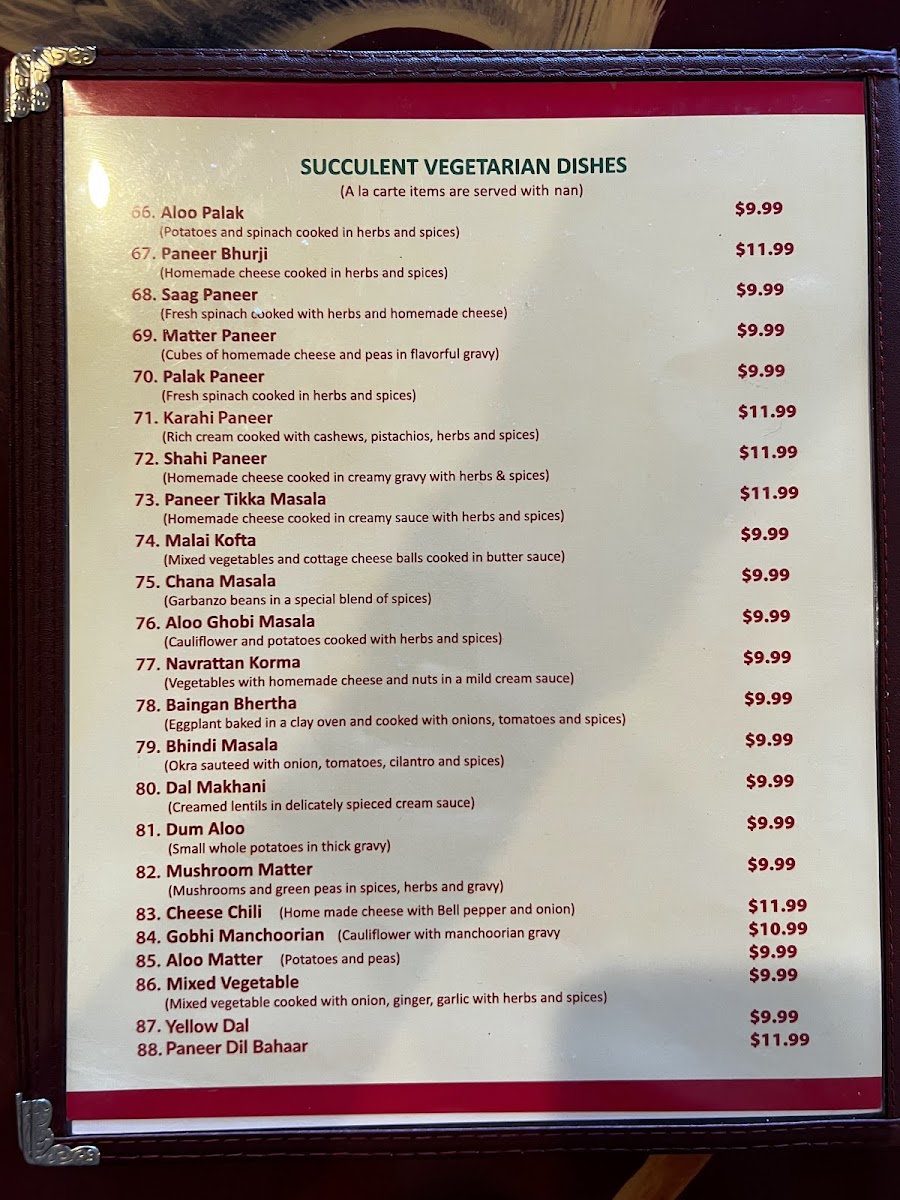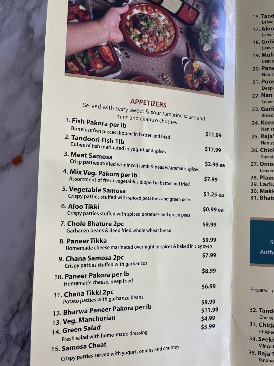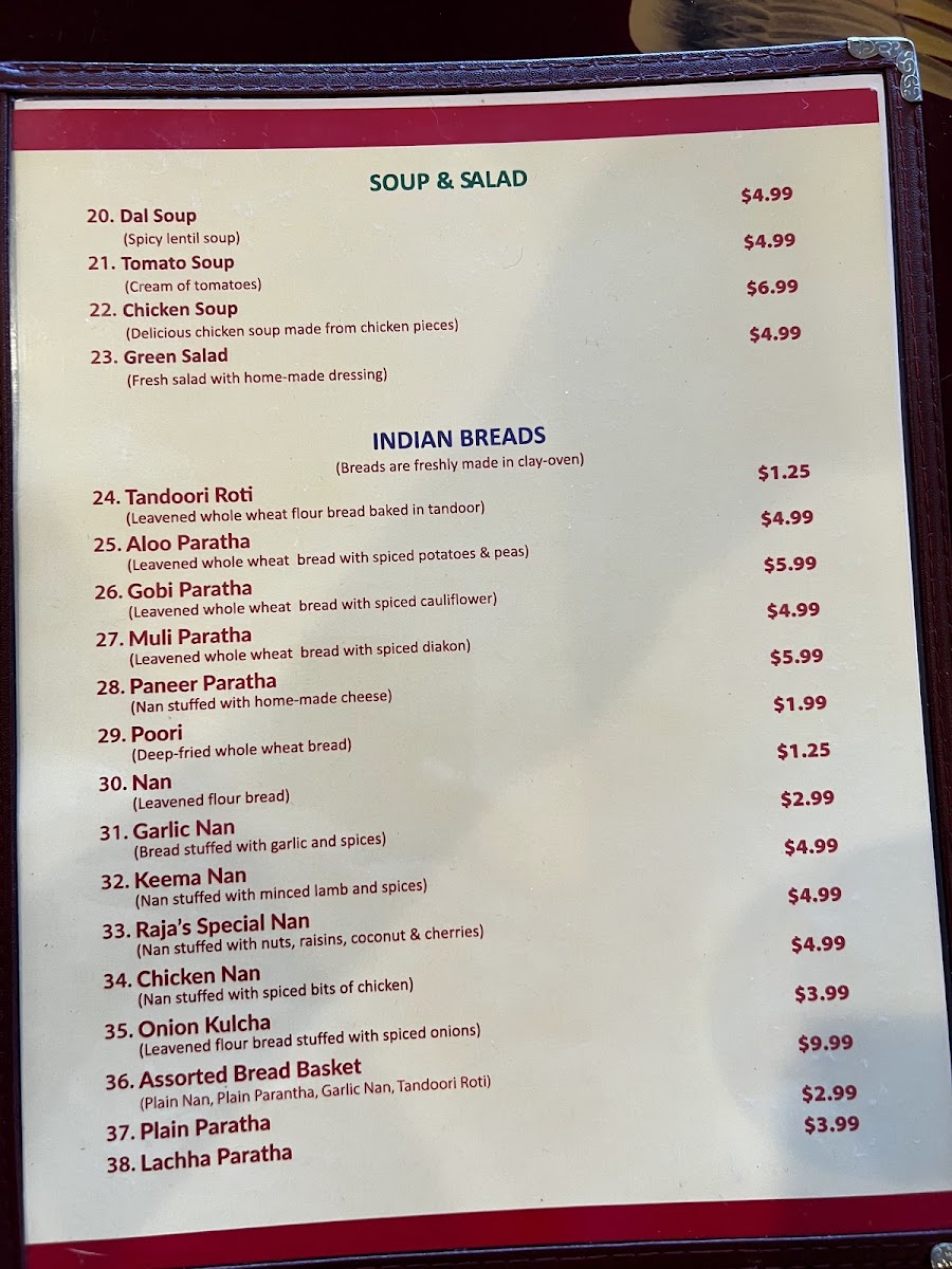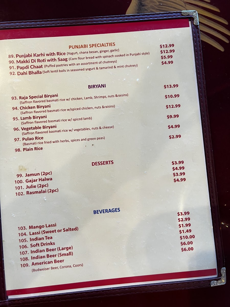Moving on to their tantalizing Tandoori Specialties, you absolutely cannot miss the Tandoori Chicken, marinated in a spicy yogurt blend and cooked to juicy perfection for $8.99. The Raja Tandoori Mixed Grill offers a feast for the senses, combining tandoori shrimp, chicken, seekh kabab, and chicken tikka glory for $19.99.