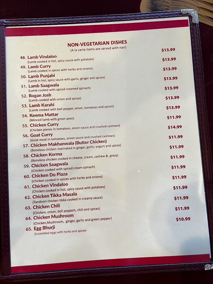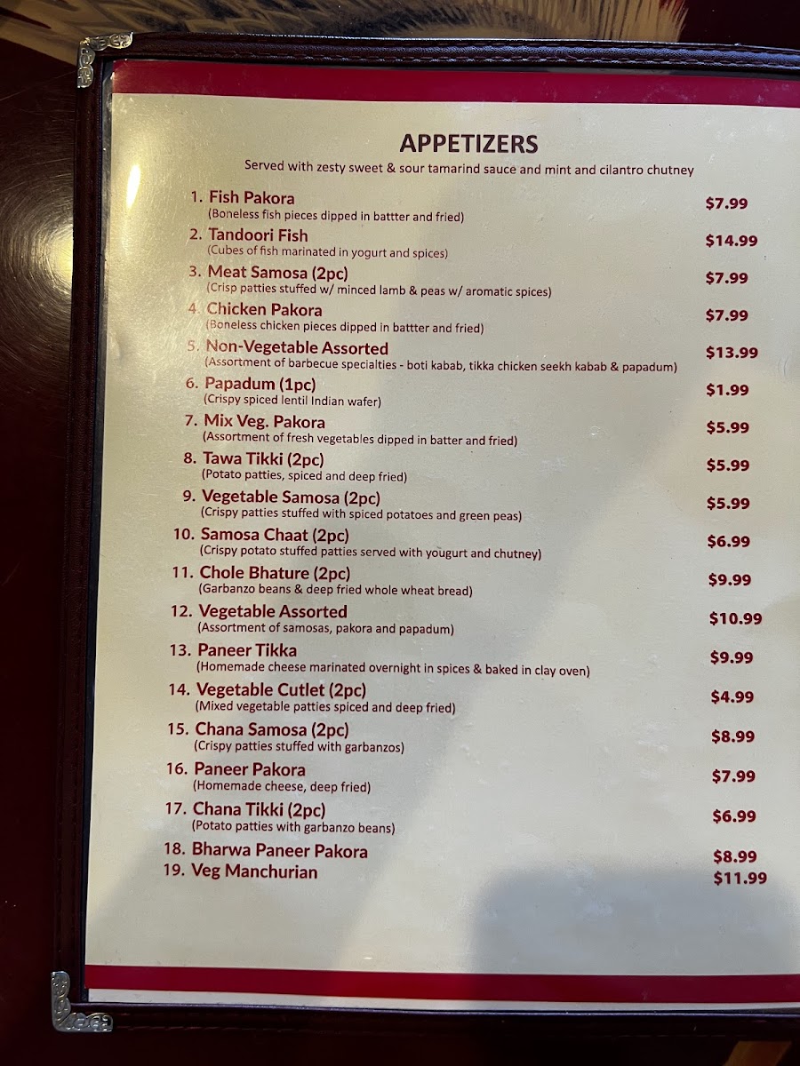 If seafood is your preference, the restaurant excels with dishes like Fish Curry and Shrimp Masala, fusion masterpieces swimming in spicy gravies, each available for approximately $17.99-$19.99. Every bite is a testament to the restaurant's commitment to authentic flavors that dance on your palate.